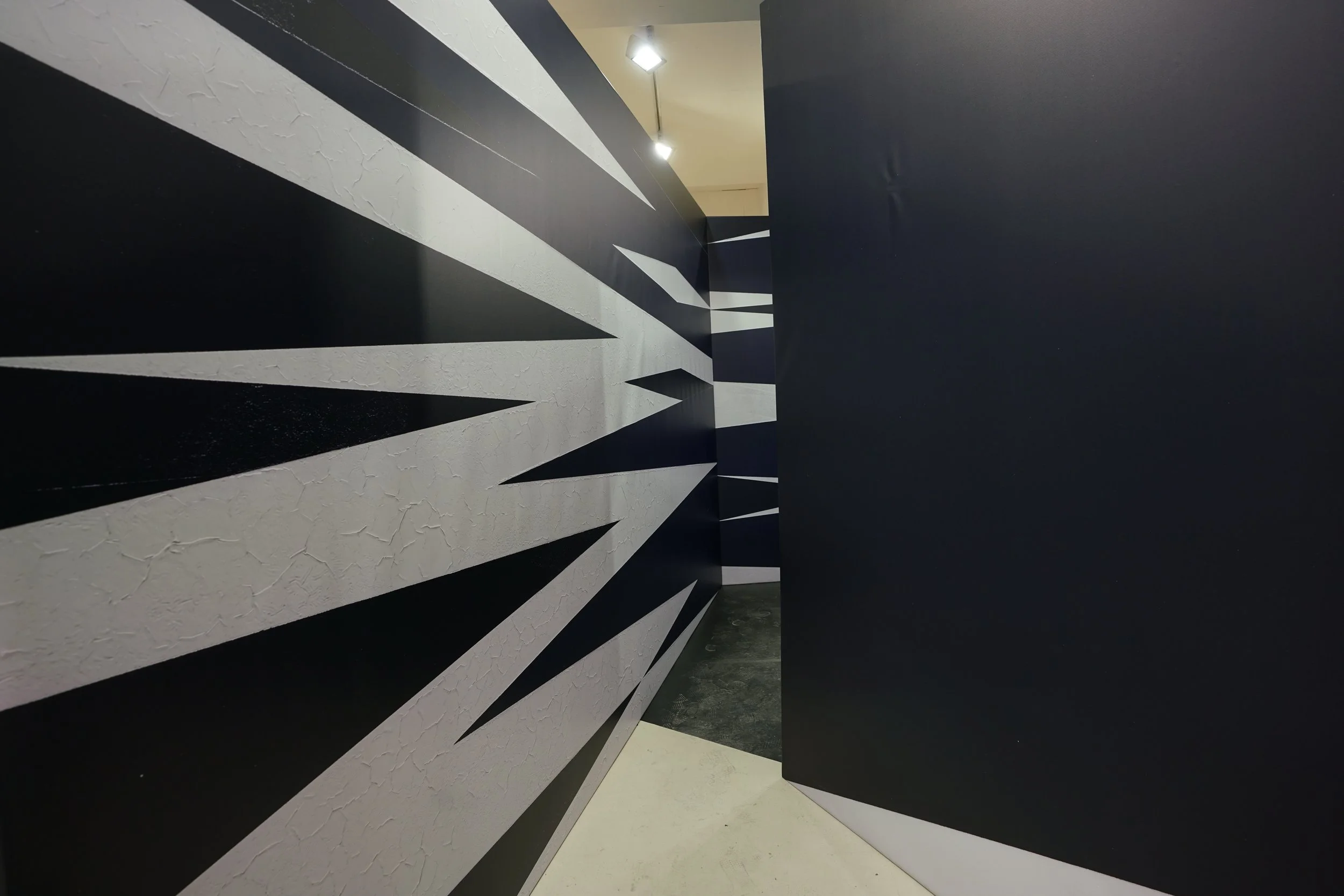 The exhibition space is a memorial hall built by the Nazis, as part of the Lilienthal Cemetery to honor the fallen Wehrmacht soldiers. The location undescores KLANGAUSTREIBUNG’s critical reflection upon national identity.